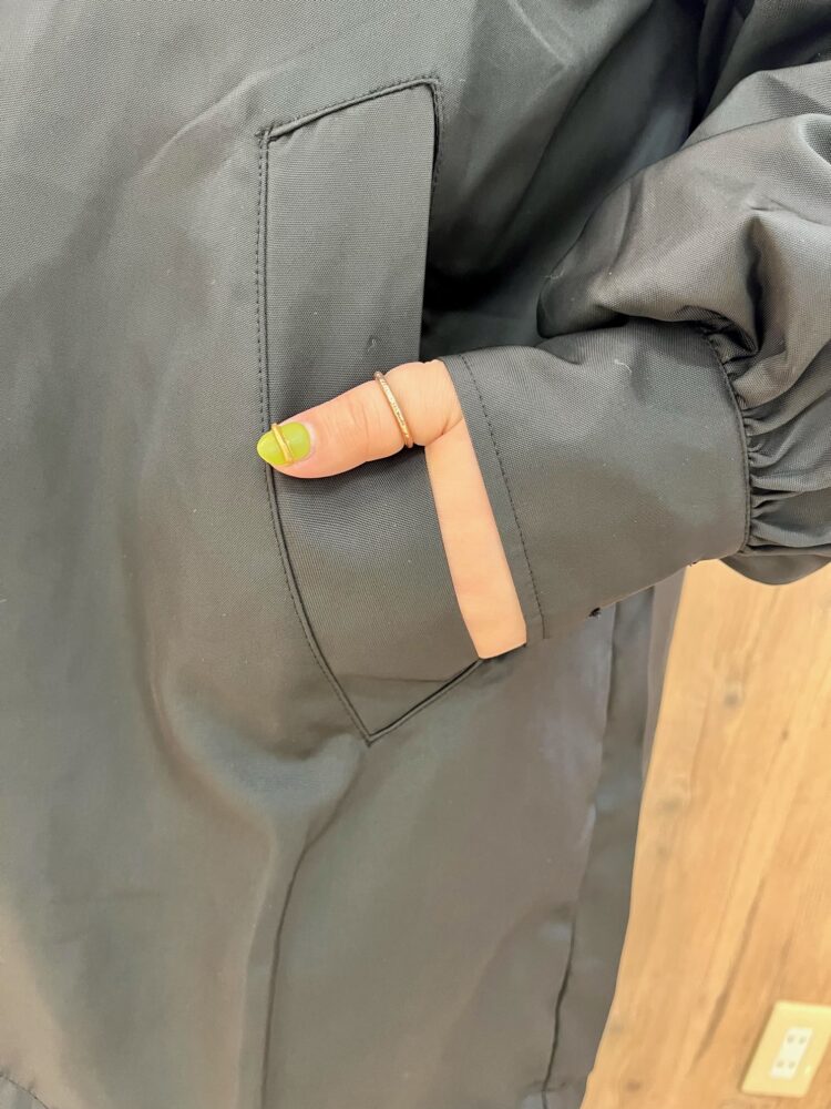 裾には絞れるようにヒモが付いています。