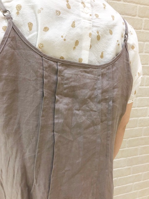 シャリ感のあるリネン素材と、ピンタックが施されたキャミワンピ。