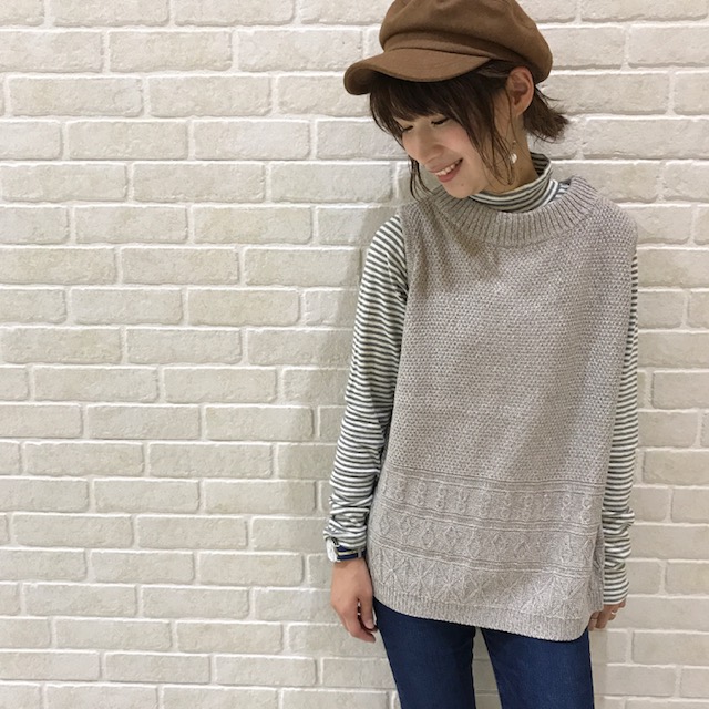 ニットベスト×スキニーデニムの大人めカジュアルに。