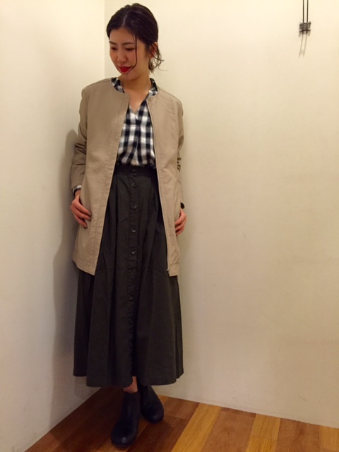 綿麻素材の軽い履き心地と、前ボタンがかわいいフレアスカートです。