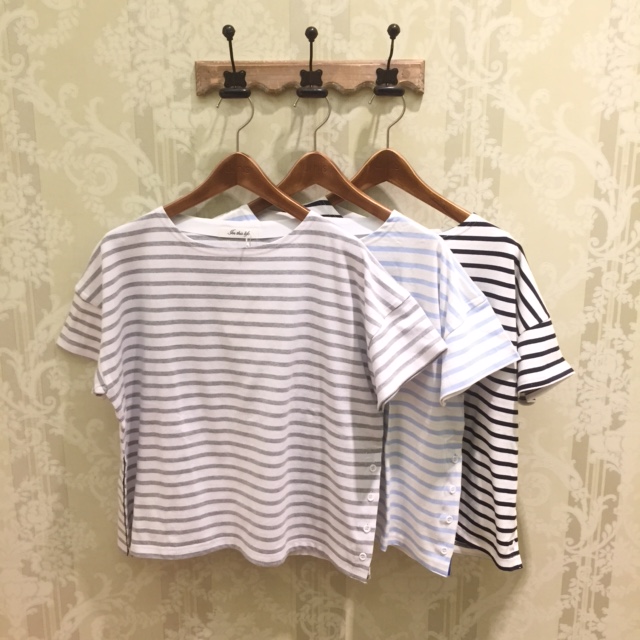 ボーダー×ブラックの定番スタイルに、ブラウスと小物でアクセントを入れてみました!!