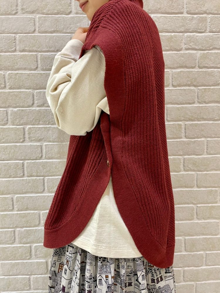 ベストの中に着用するのは、ブラウスやシャツも可愛いですが、今回はこちらのカットソー。