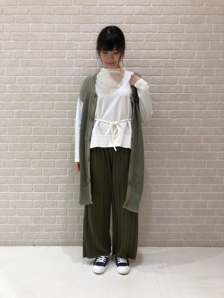 使い勝手の良いグリーンカラーでまとめたワンカラーコーデで、今年らしい着こなしに♩