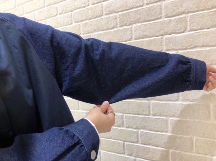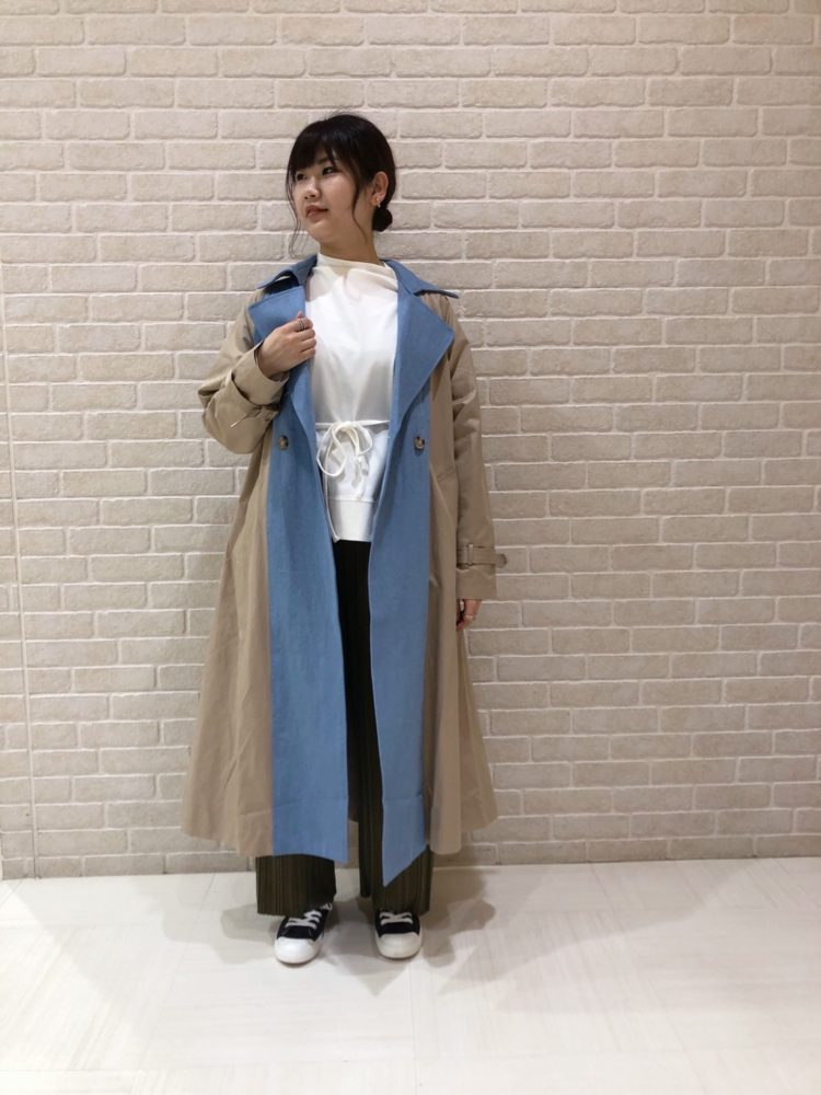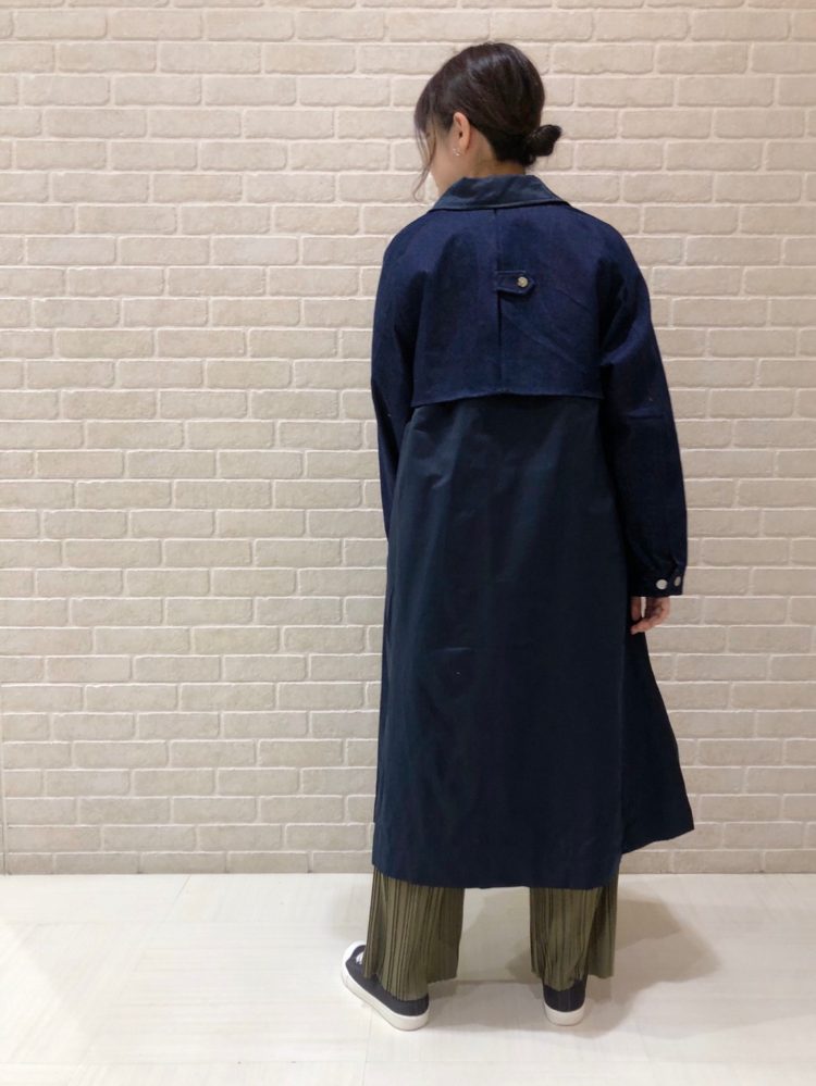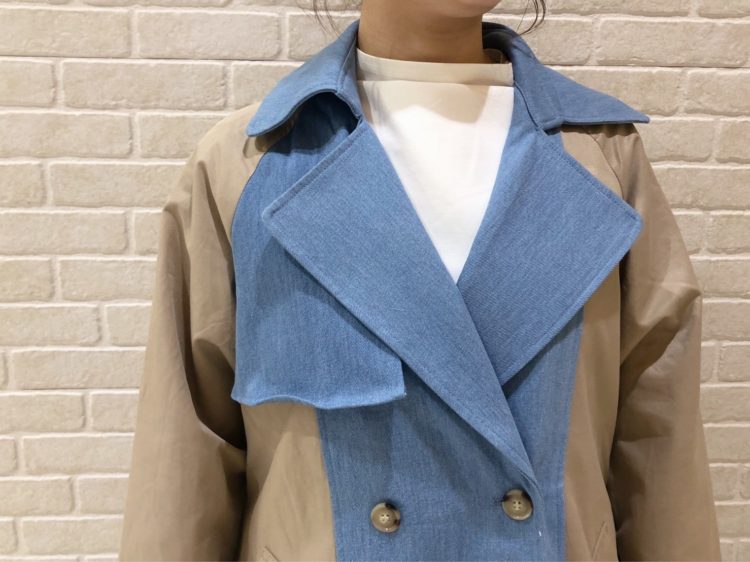 襟はもちろん、デニム切り替えデザインが、先ほどのトレンチコートと配置が変わるので、雰囲気も変わりますよね♩