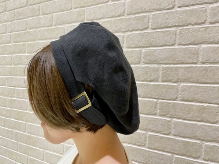 ベルト風のバックルが特徴的なベレー帽です!