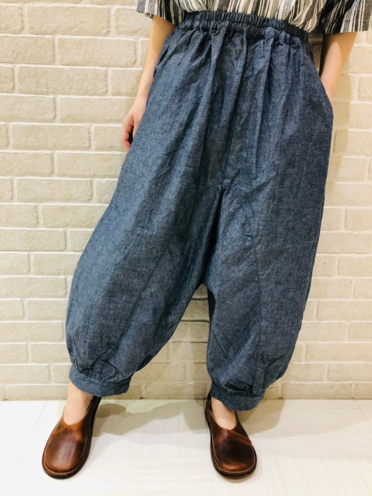 お尻周りはフワッと広がりがありますが、足首はキュッとしまっています。