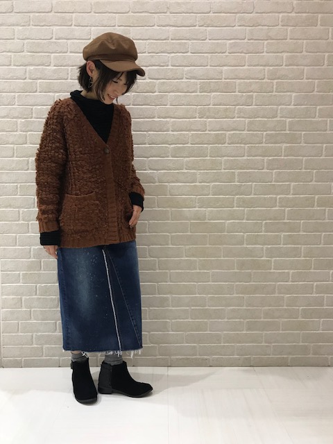バルギーニットカーディガンに『Antgauge』ペンシルスカートを合わせたレディコーデ。