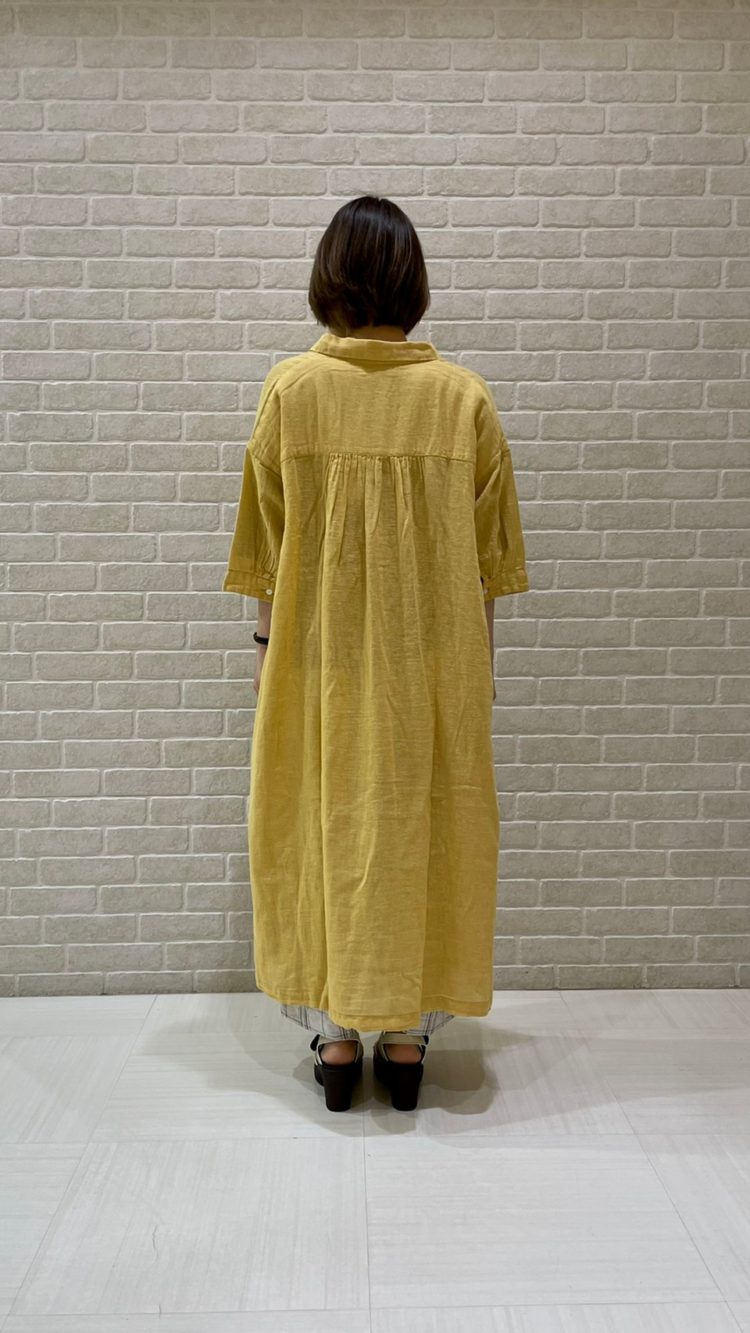 綿麻ガーゼスモッキングシャツワンピ