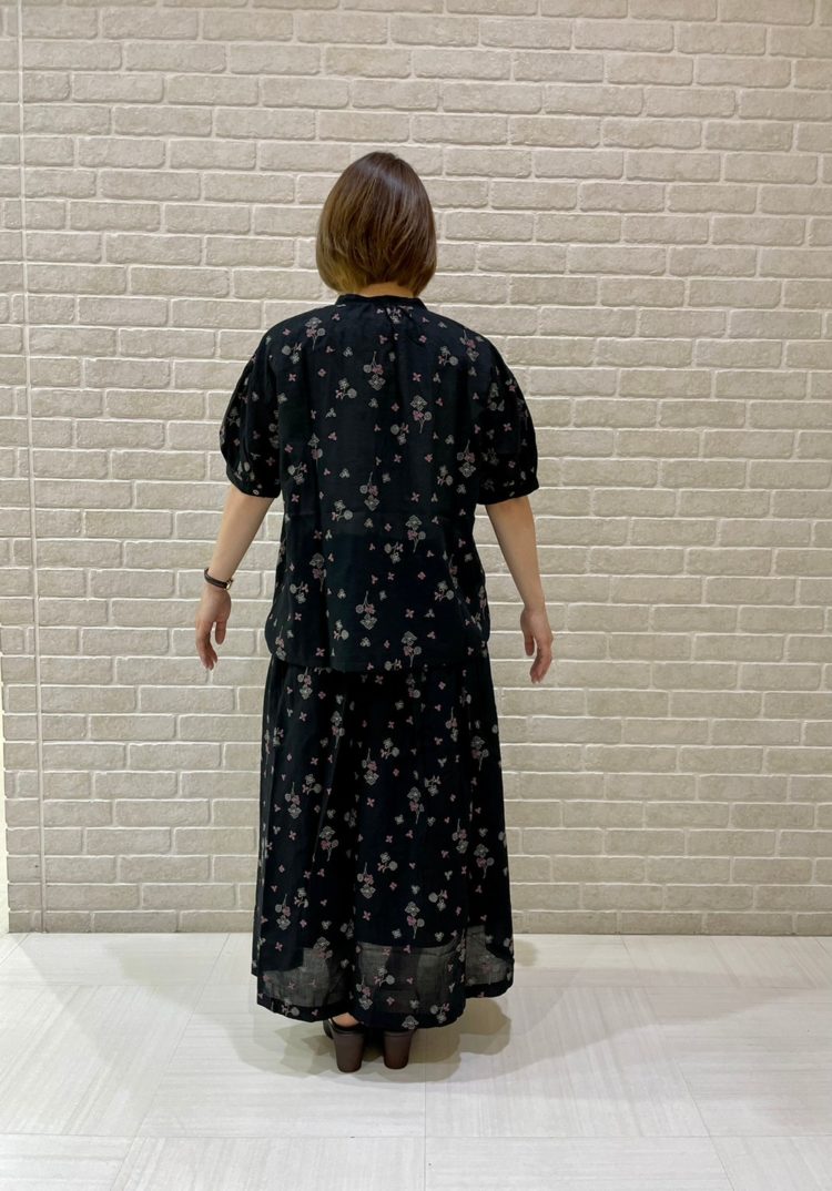 先程ご紹介した、ブラウスと同じ柄のフレアースカートが入荷しました♪