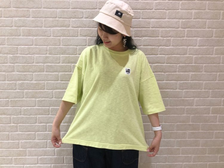 夏らしいライムカラーのTシャツをメインに、インディゴブルーのデニムを合わせたシンプルなコーディネート!