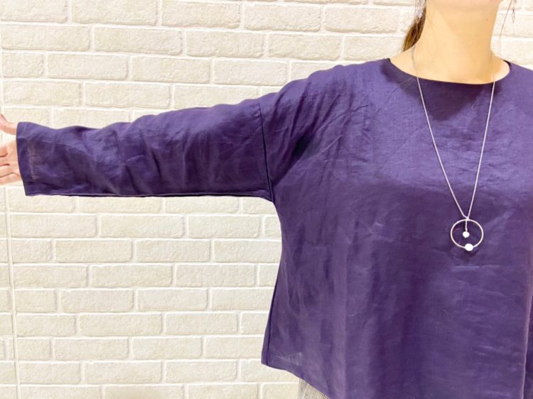 さらりと柔らかな風合いが魅力の14番手リネン素材。1枚で着てもオシャレ感漂うブラウスとなっております。