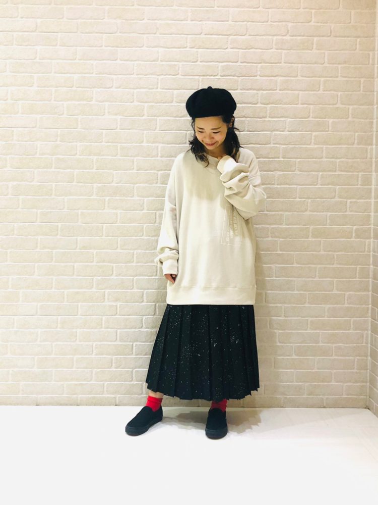 ニットやトレーナーなど厚手のアイテムも合わせやすいですよ◎