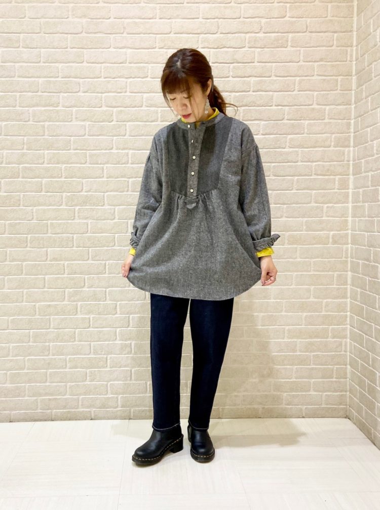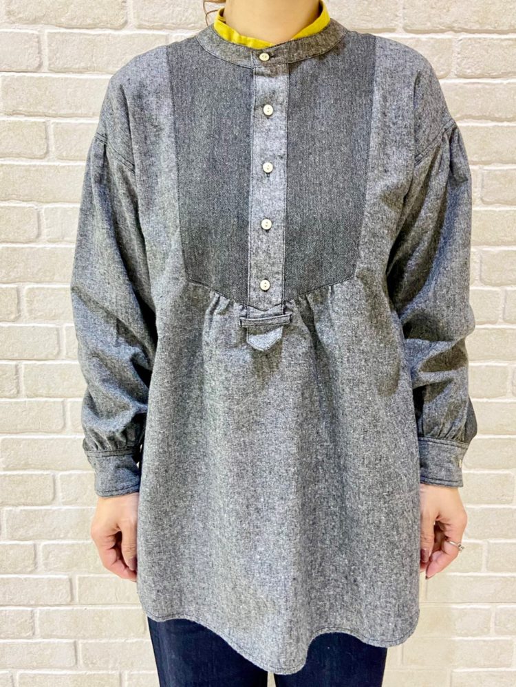 ☆微起毛ダンガリー前ヨークギャザーシャツ