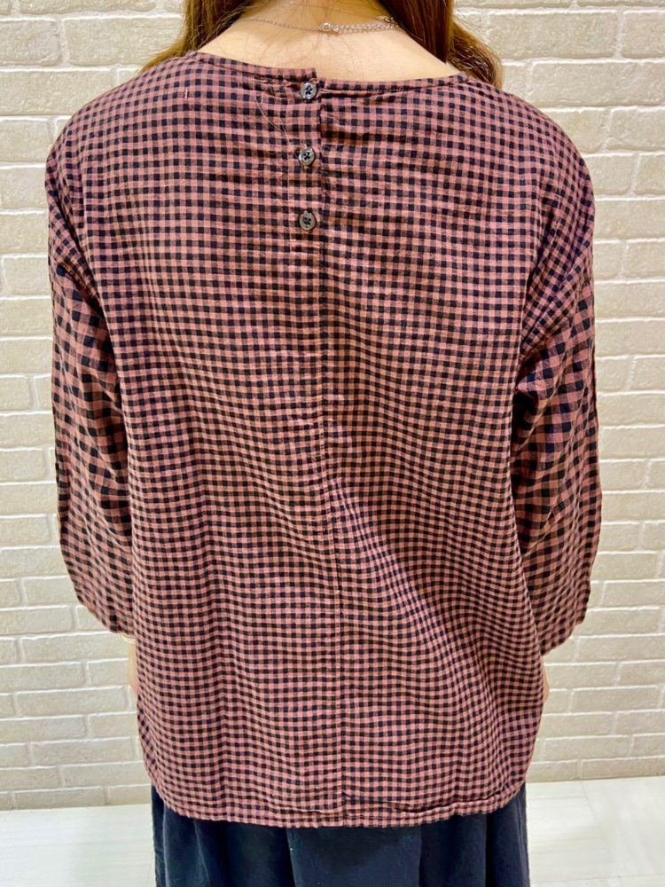 ☆別注綿麻ギンガムチェック日本製品染切替プルオーバー