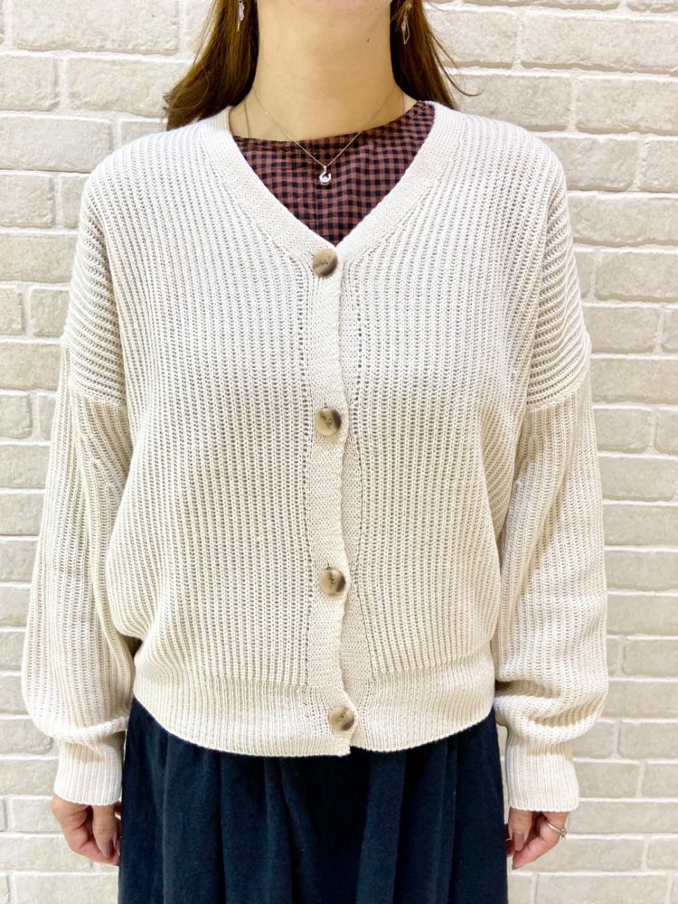 気温に合わせて脱ぎ着の出来るカーディガンは、この時期とても 重宝しますよね♪