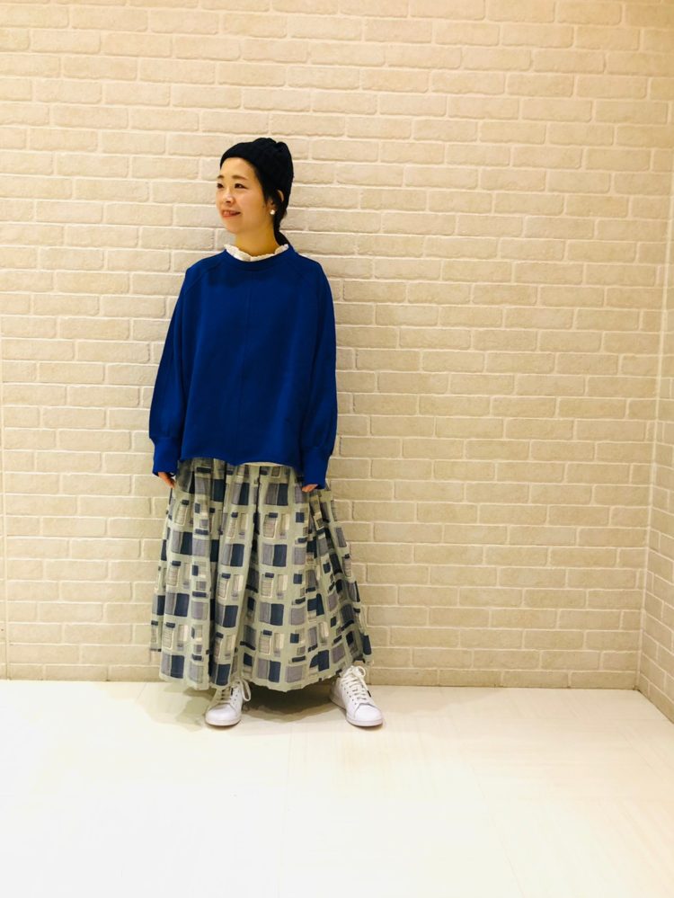 裾は広がったシルエットなので、ワイドパンツや、広がりのあるスカートとの相性もGOOD!