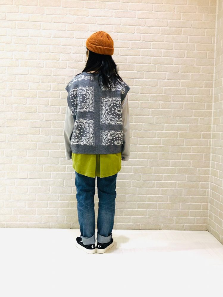 横に広めのシルエットなので、ワンピース、チュニックの上に重ねてもGOOD!