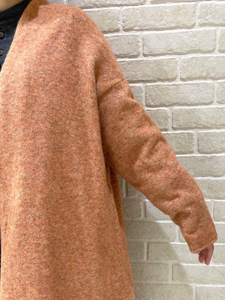 キャメル(ラクダの毛)混で、とても肌触りの良い質感のニットカーディガン。