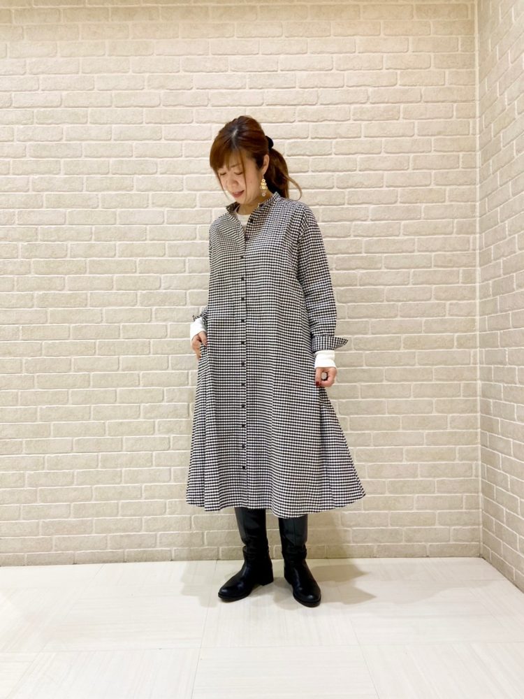 シャツワンピースの良いところは、羽織としても、サラッと1枚でも、上からトップスを着てスカートとしても使える所です!