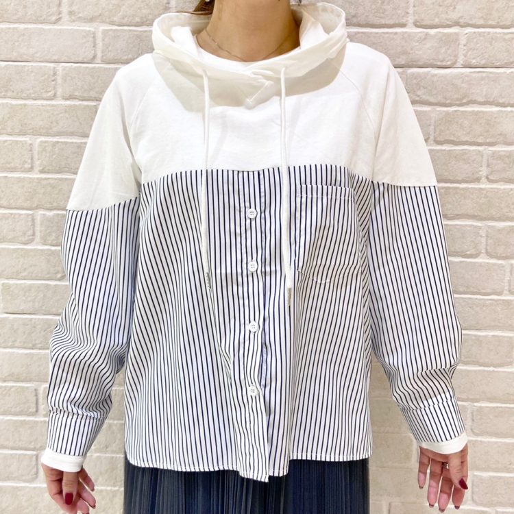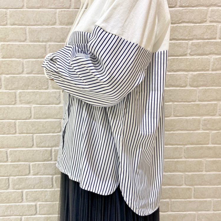 中には、ストライプとの切り替えが可愛いパーカーを着て、爽やかに!