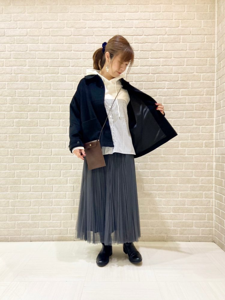 身幅がゆったりしているので、中にニットや厚手のトップスを着ても◎