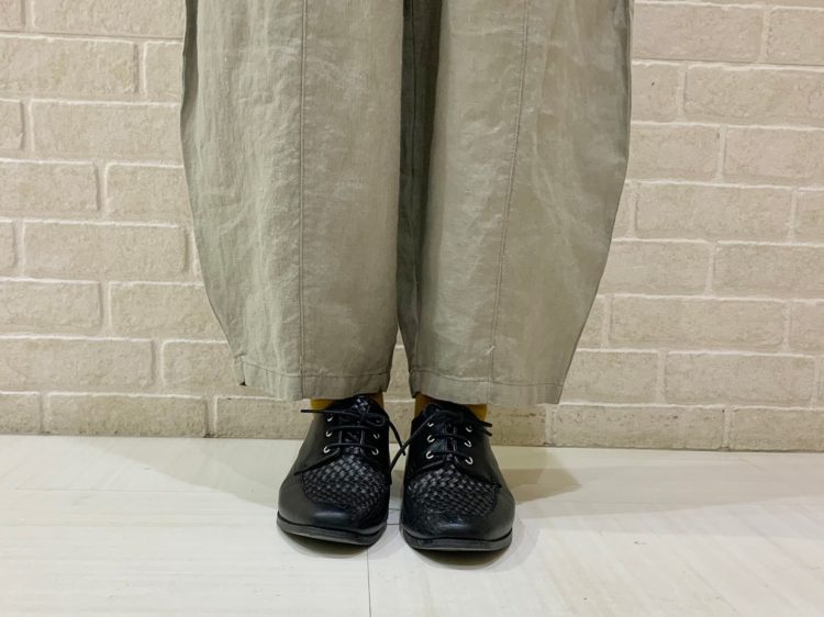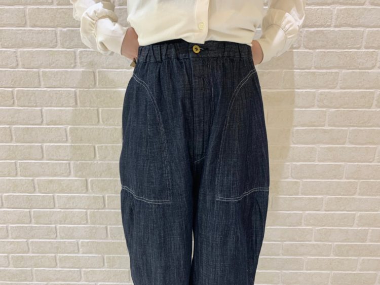 裾部分が僅かに絞られて丸み帯びているため、ワイドパンツですがスッキリとしたシルエットに◎
