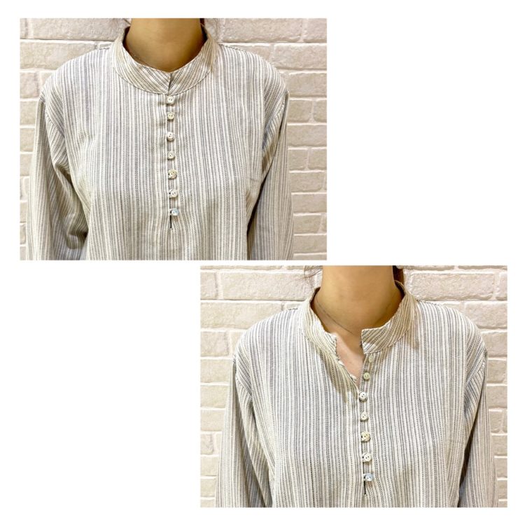 ネック後ろ側には、ギャザーが付いていますよ。
