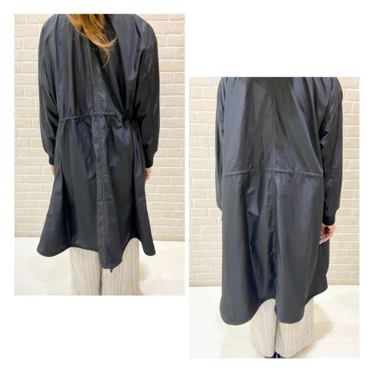 コートの中のウエスト周りと後ろ裾部分には、ループストッパーがついています。
