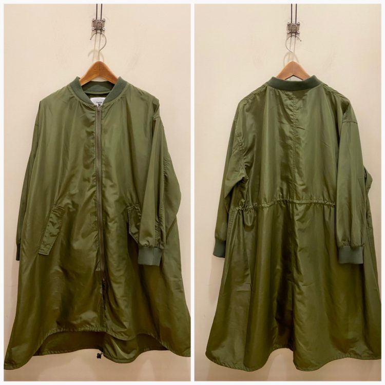 marbleSUDは、可愛らしいイメージがありますが、こちらのブルゾンは、ロング丈のMA-1。