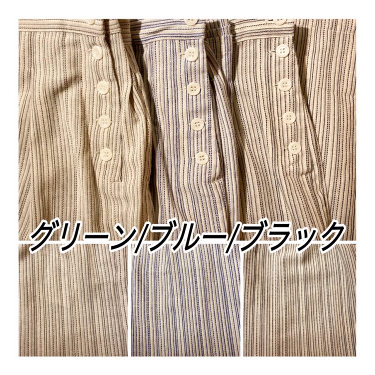 ブルーは、白地にブルーのストライプで、グリーンとブラックは、キナリ地にストライプが入っています。