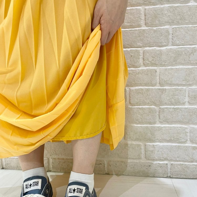 縦のラインを強調してくれる、プリーツスカートは、スタイルアップ効果もあり、しっかりと動きが出るので、これからの時期、大活躍間違いなしの商品です!