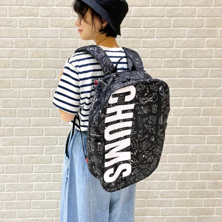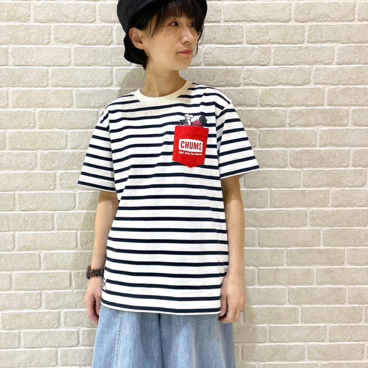 せっかくなので、チャムスのTシャツと合わせてカジュアルスタイルにしました!