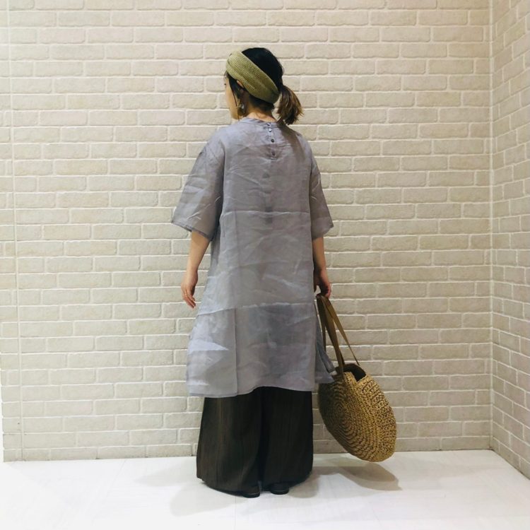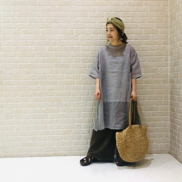 サラッとした、リネンチュニックを使った、大人のナチュラルコーデ。