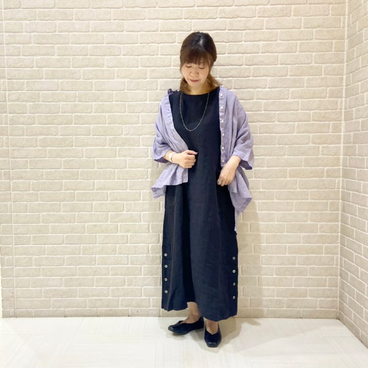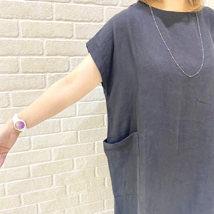 ワンピースとして、中にパンツやスカートを合わせても良し◎そして、この袖感もスッキリと見えていいですよね!