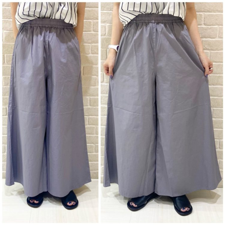 ボリュームのあるフレアパンツですが、キレイめにも、スニーカーを合わせてカジュアルにも、合わせやすい1枚です。