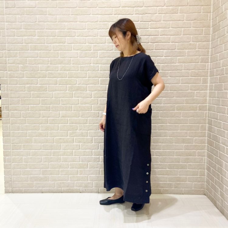 シンプルなワンピースなので、襟元にお好きなネックレスでキレイめに!!ストールとジーパンなどでカジュアルにっ!!