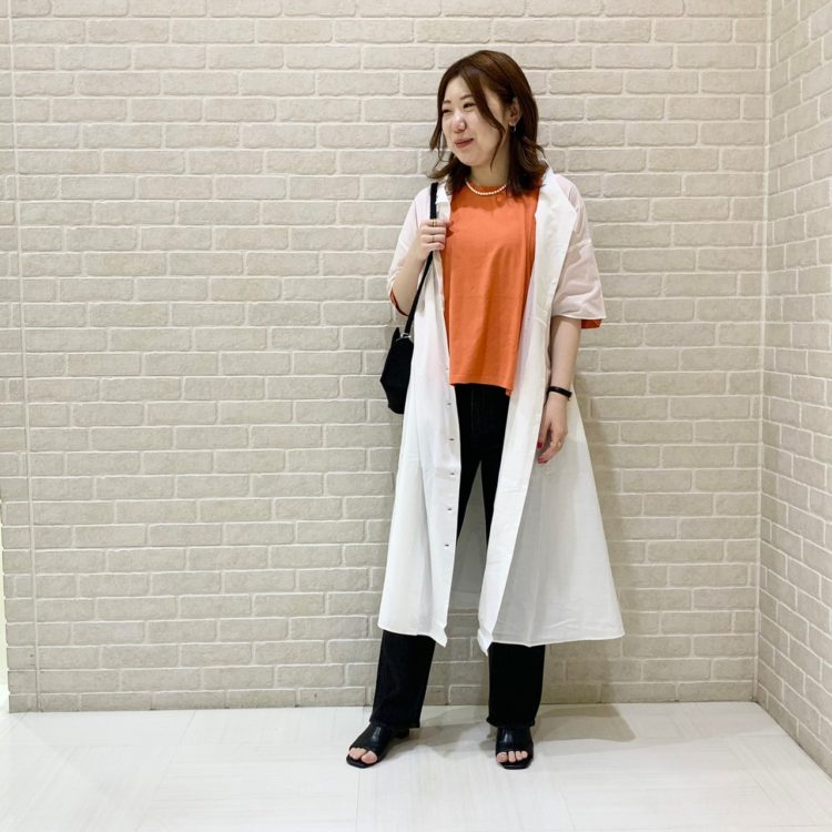膝下ぐらいまでの、長めの丈感。
