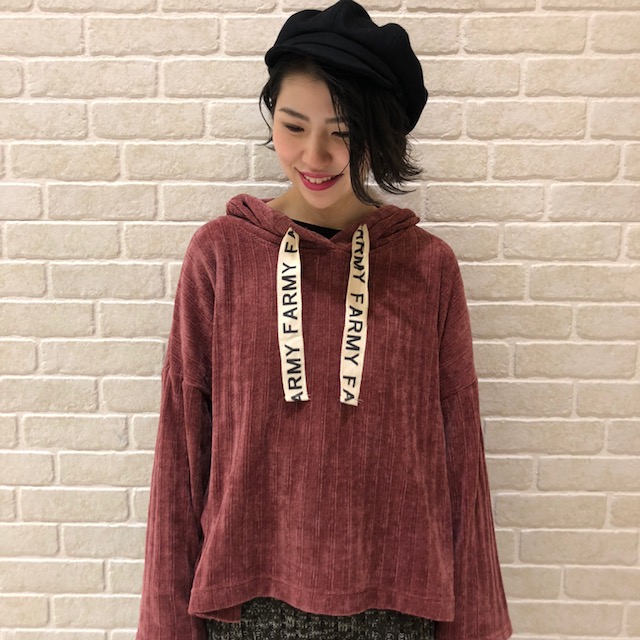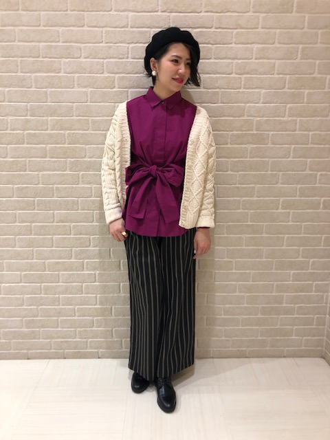 カーディガン、スカートの暖かみある素材感で冬らしさをプラスしました!!