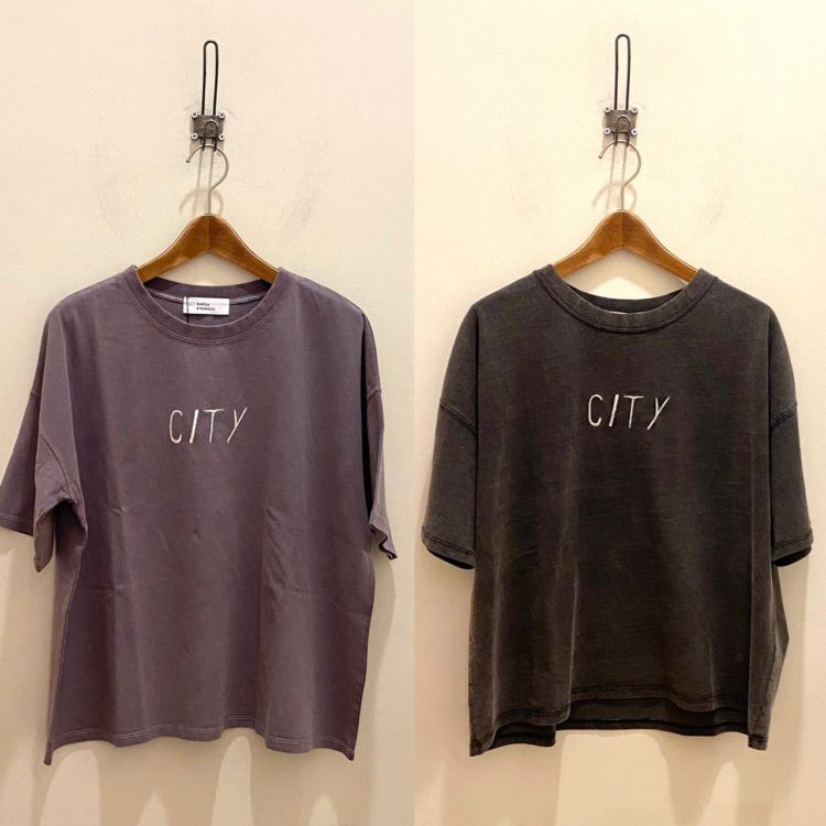 不均一でラフな染めの表情が特徴のピグメント加工を施した、KAKELAandTRANQUILのビンテージライクなロゴTシャツ✧*
