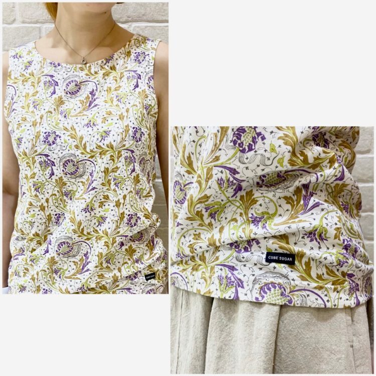 シンプルなカーディガンとスカートだったので、中には、柄物のタンクを着てみました!