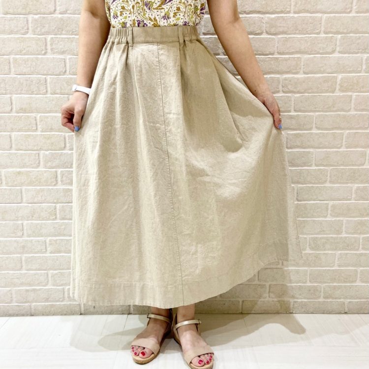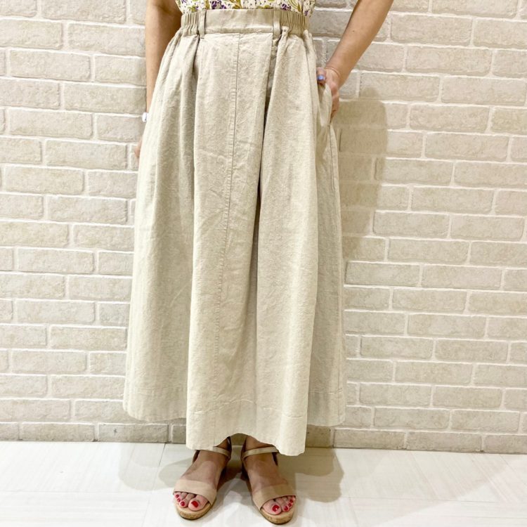そして穿いているのは、中肉厚の軽やかな綿麻素材を使用した【 SUN VALLEY 】のスカート!