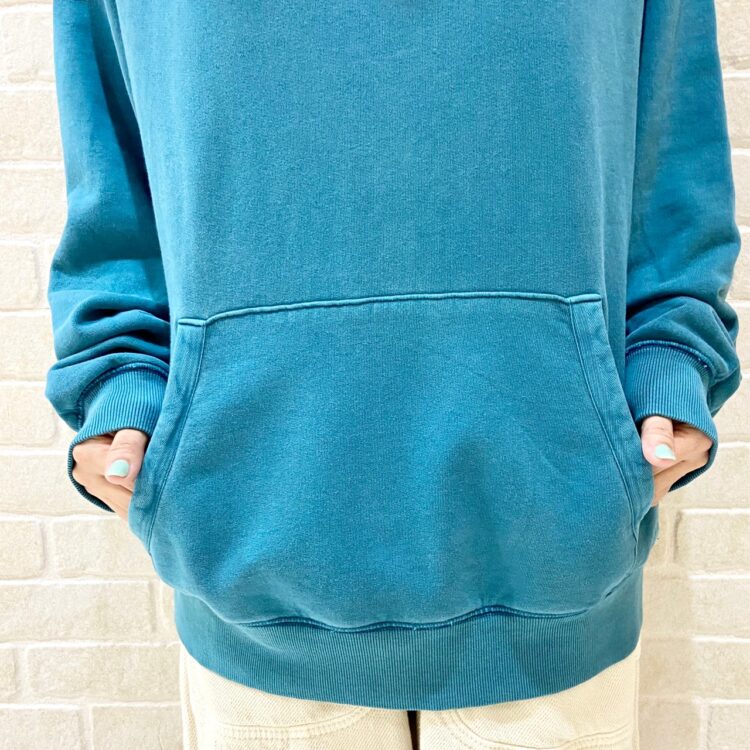 表は空紡糸らしい肌触りでありながら、裏のパイル面には太い裏糸を使用しているので空気を多く含みフワッと柔らかい着心地◎