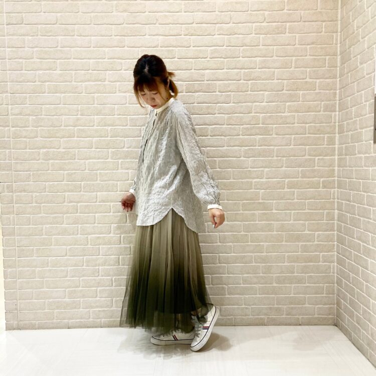 チュールスカートなのにグラデーションカラー!!あまり見ない組み合わせで、個性的!