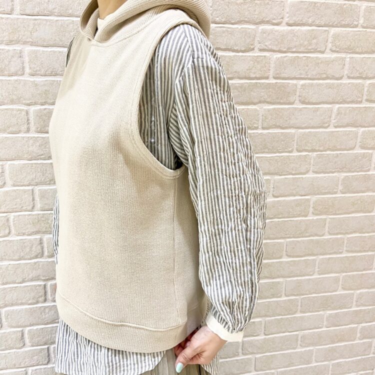 普段使いしやすいシンプルな無地のパーカーベスト♫ Tシャツやブラウスと重ねるのにほどよい肉厚感◎