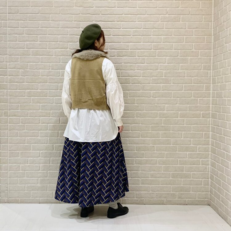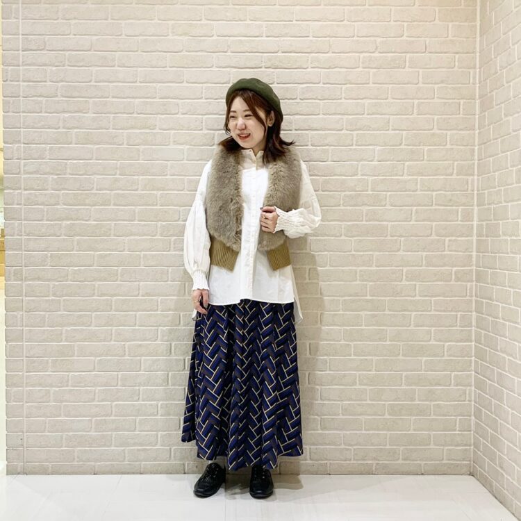 今年1つは欲しいアイテム”ファーベスト”を組み合わせて、トレンド感をプラスしてみました♪
