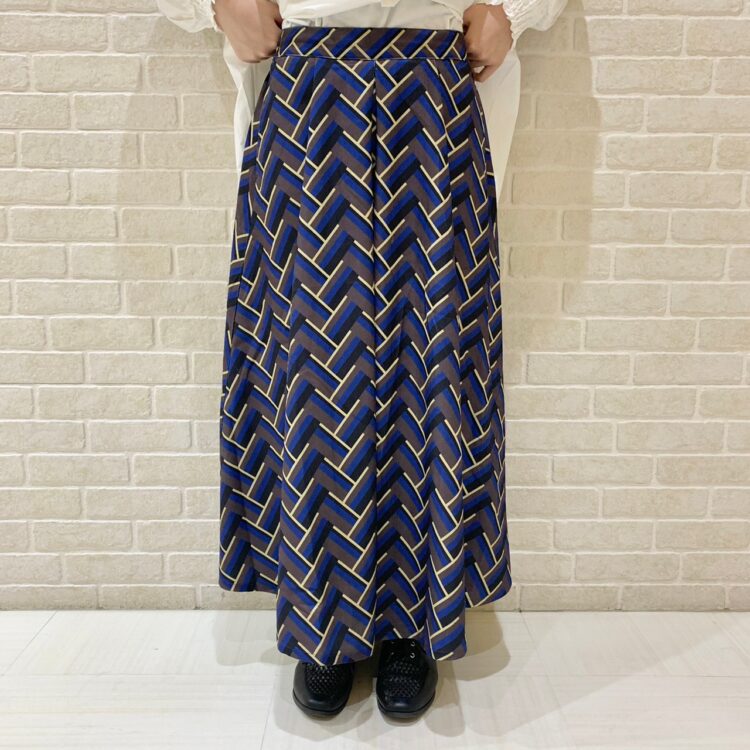 コーデュロイ幾何プリーツタックイージーロングスカート