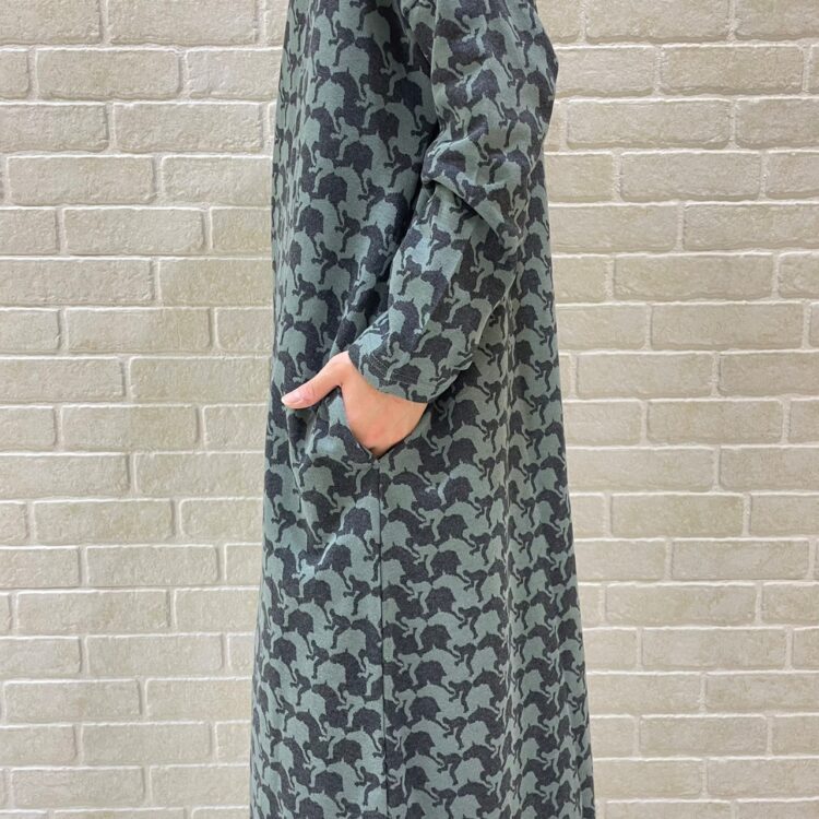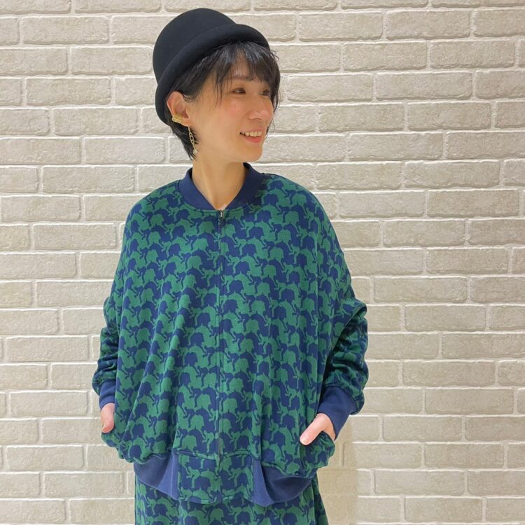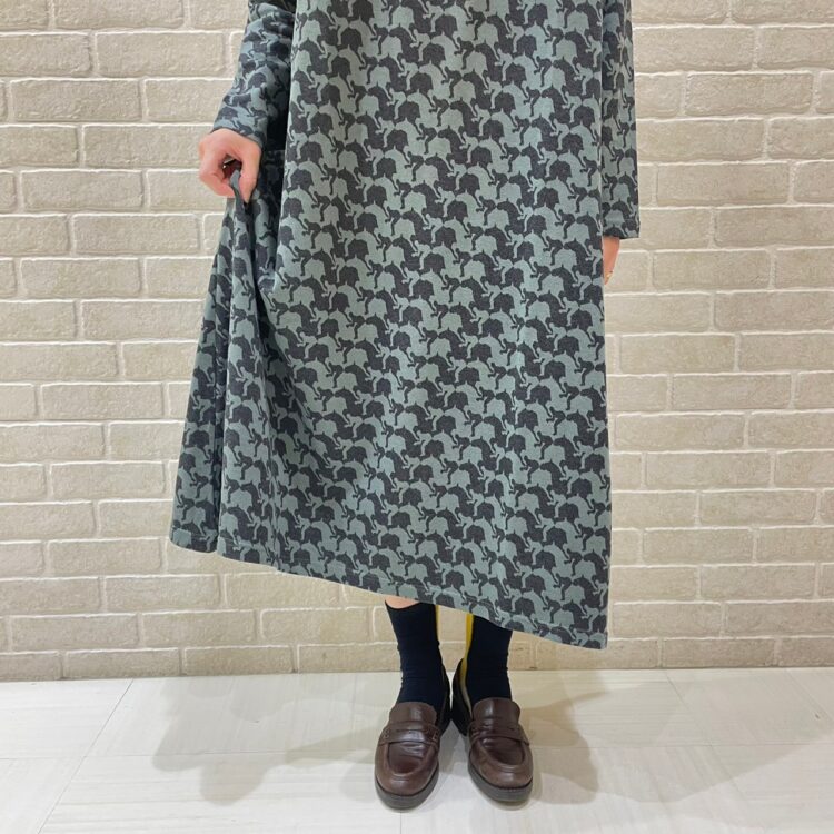 最後は、” 人と馬 “のワンピースとジャケットでセットアップ風コーデ。