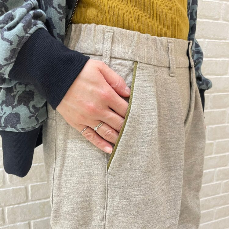ポケットにはパイピングが施されており、細部までこだわりの詰まったパンツです☺︎