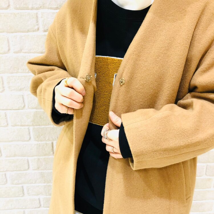 Col.ベージュ(着用)、キャメルオレンジ、カーキ、チャコール