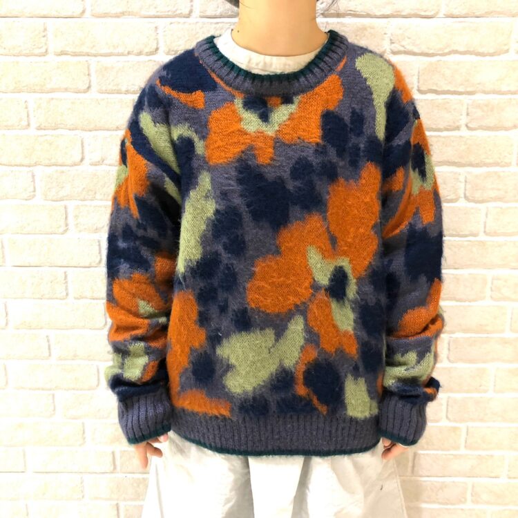 レトロな花柄ニットを主役にしたコーデ✳️